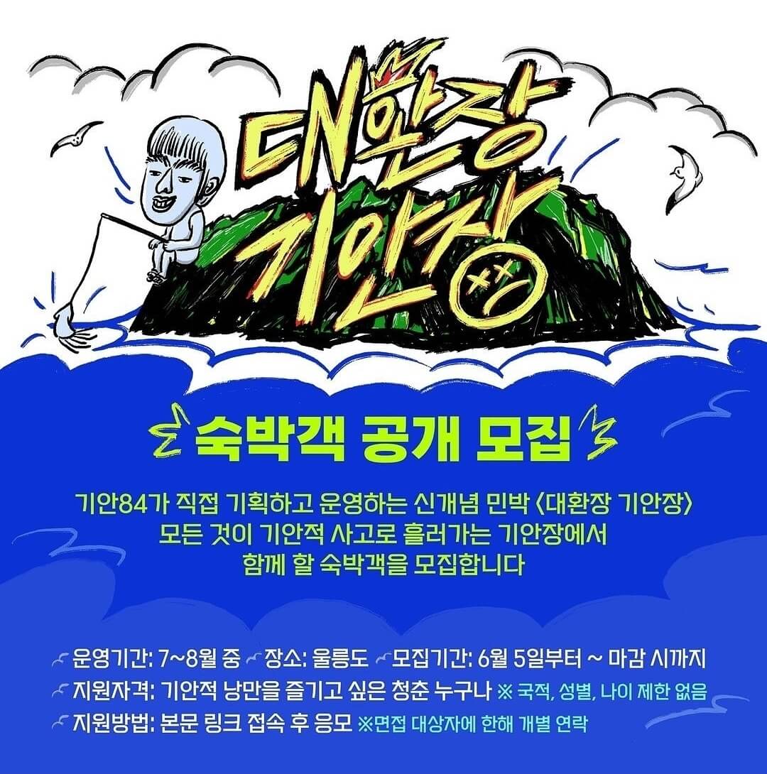 기안84가 운영하는 민박집에 머물고 싶은 청춘 누구나 신청이 가능하며, 모집기간은 6월 5일부터 시작되었습니다.
